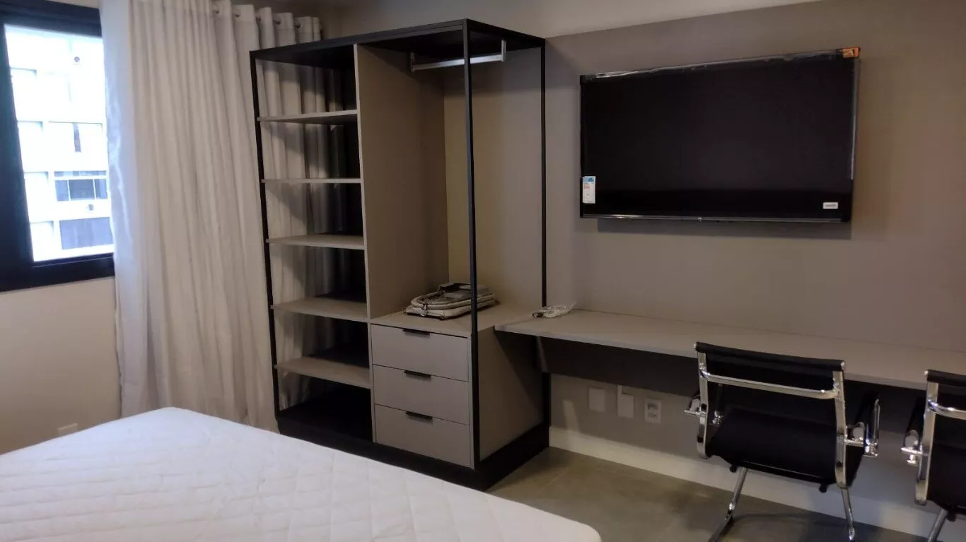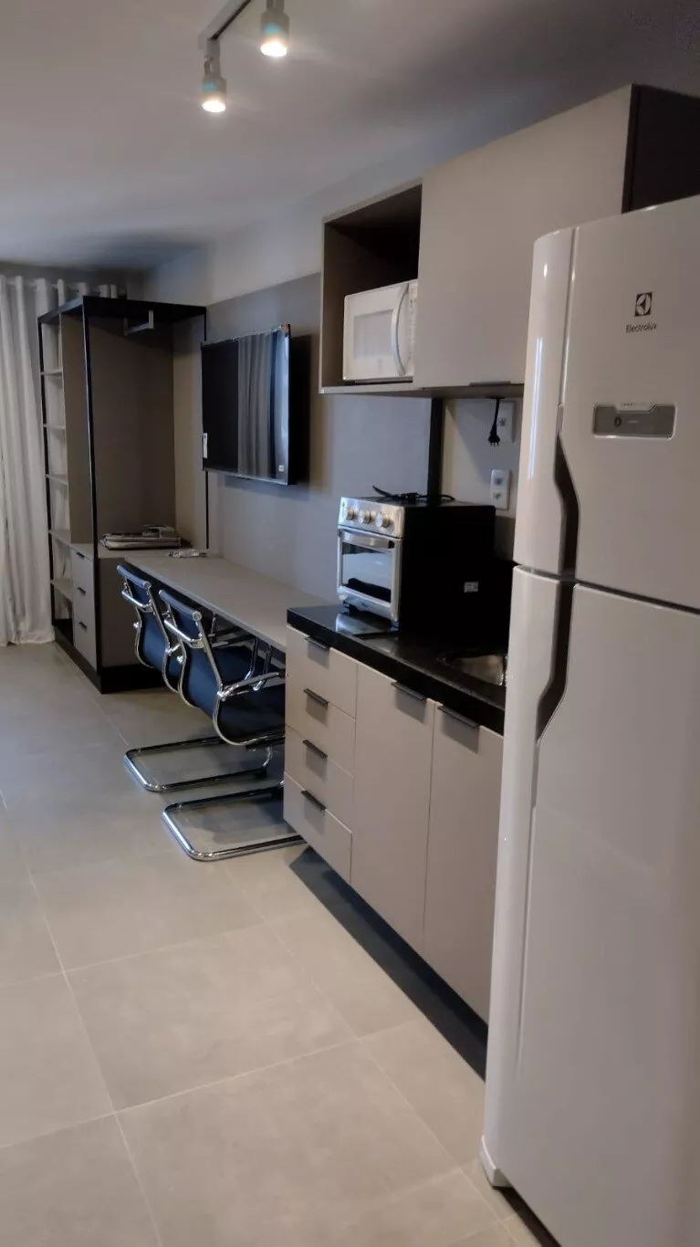 STUDIO novo, pronto para ocupação, 25m2, mobiliado e equipado com eletrodomésticos, TV e split, sol da manhã, ideal para estudantes, executivos, solteiros, casais, com opção de contratos de locação por temporada, baixo custo de condomínio e IPTU.