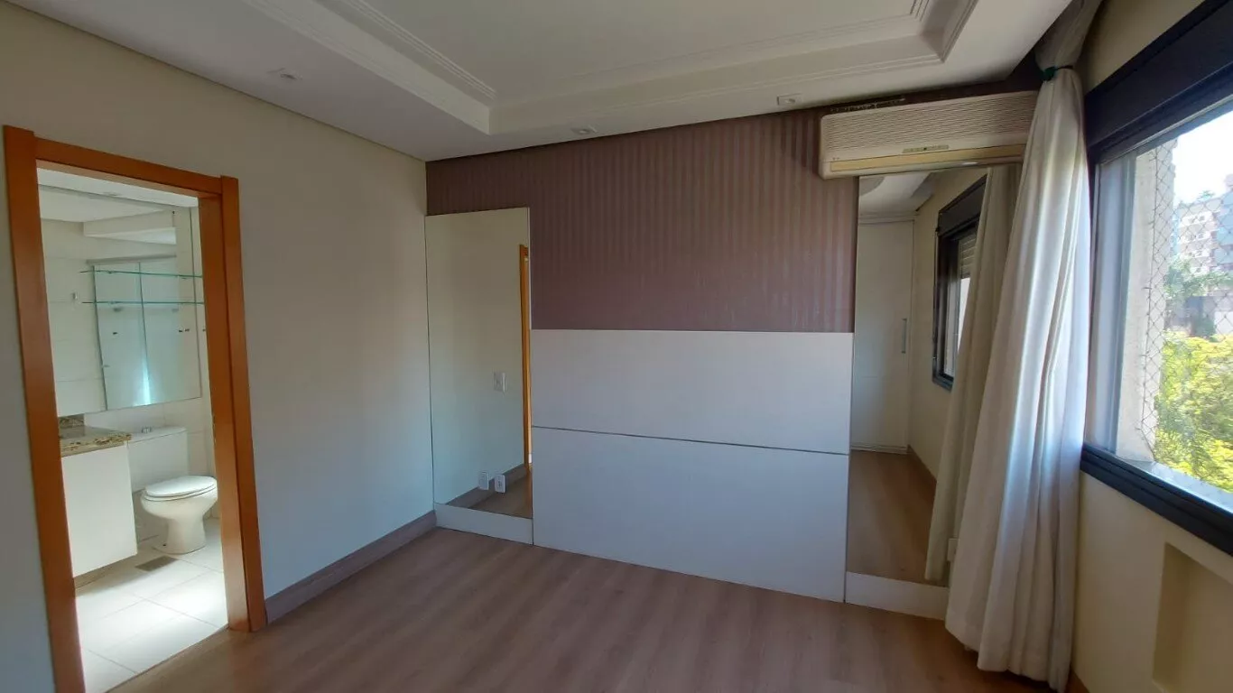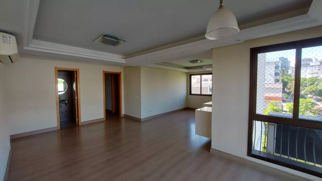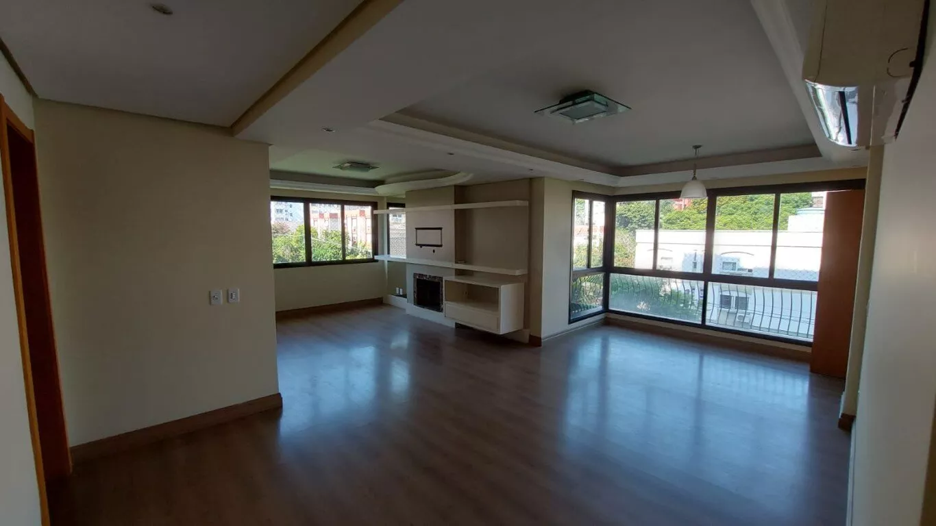 Ótimo apto. c/ 116m, desocupado, semi mobiliado, 3 dorm, sendo 1 suíte, com armários, lavabo, living para 2 ambientes com lareira, área de serviço, interligada com living com churrasqueira, aquecedor de passagem, cozinha com armários, banheiros com armários e ventilação natural. vaga dupla para 2 carros no subsolo. Prédio c/ salão de festas. Excelente localização no bairro, próximo do Zaffari Anita, farmácias, academia.