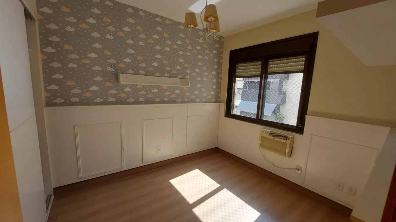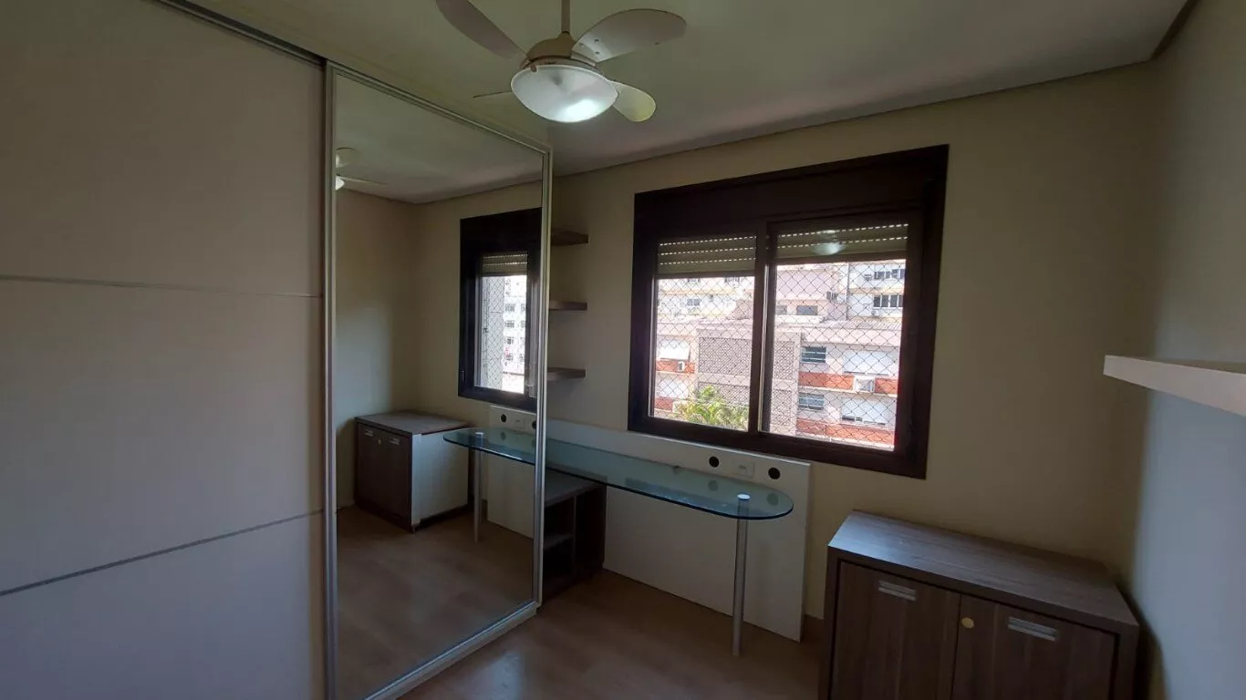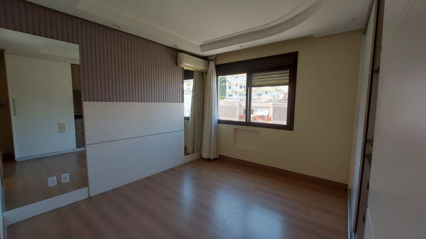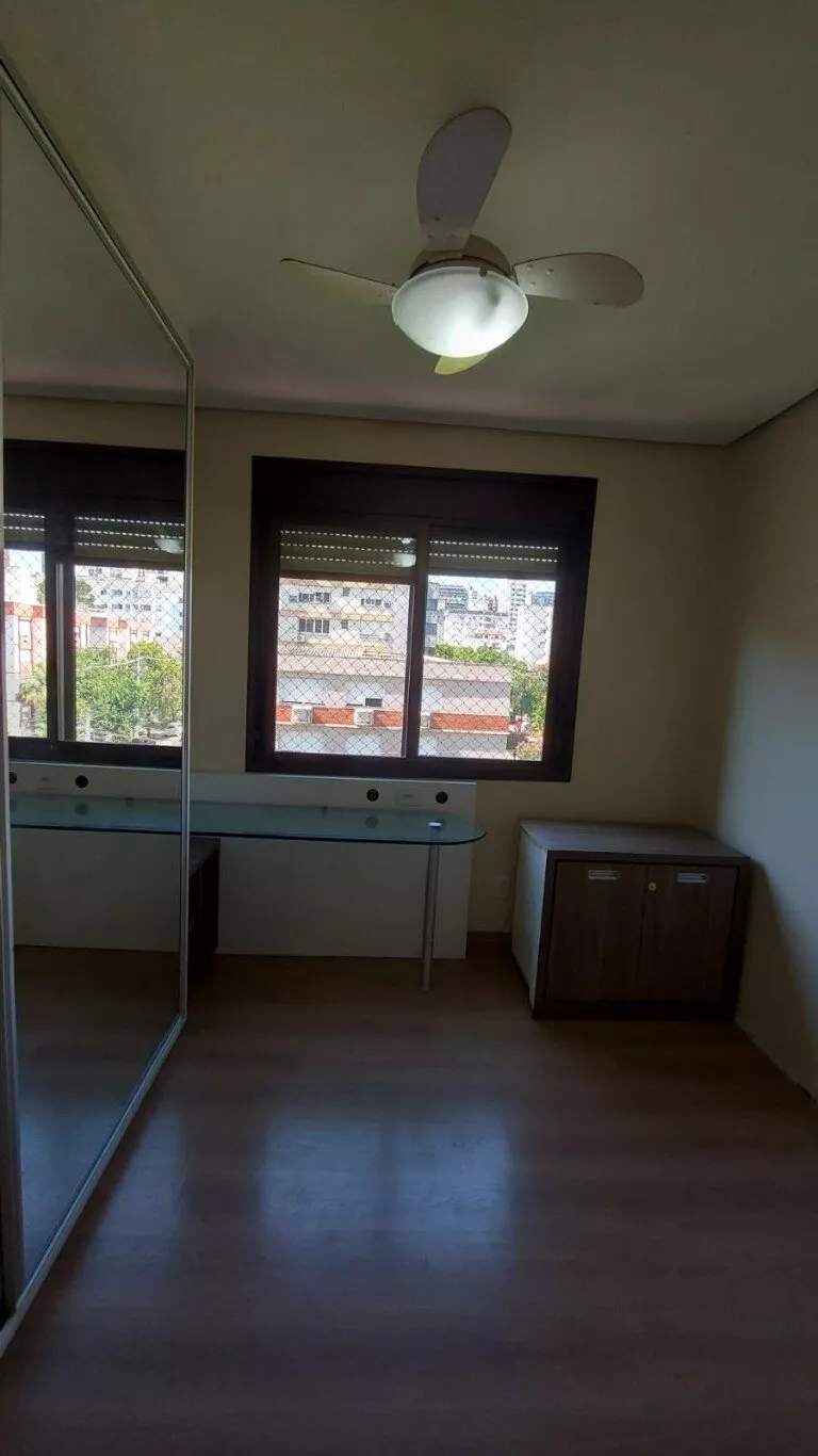 Ótimo apto. c/ 116m, desocupado, semi mobiliado, 3 dorm, sendo 1 suíte, com armários, lavabo, living para 2 ambientes com lareira, área de serviço, interligada com living com churrasqueira, aquecedor de passagem, cozinha com armários, banheiros com armários e ventilação natural. vaga dupla para 2 carros no subsolo. Prédio c/ salão de festas. Excelente localização no bairro, próximo do Zaffari Anita, farmácias, academia.