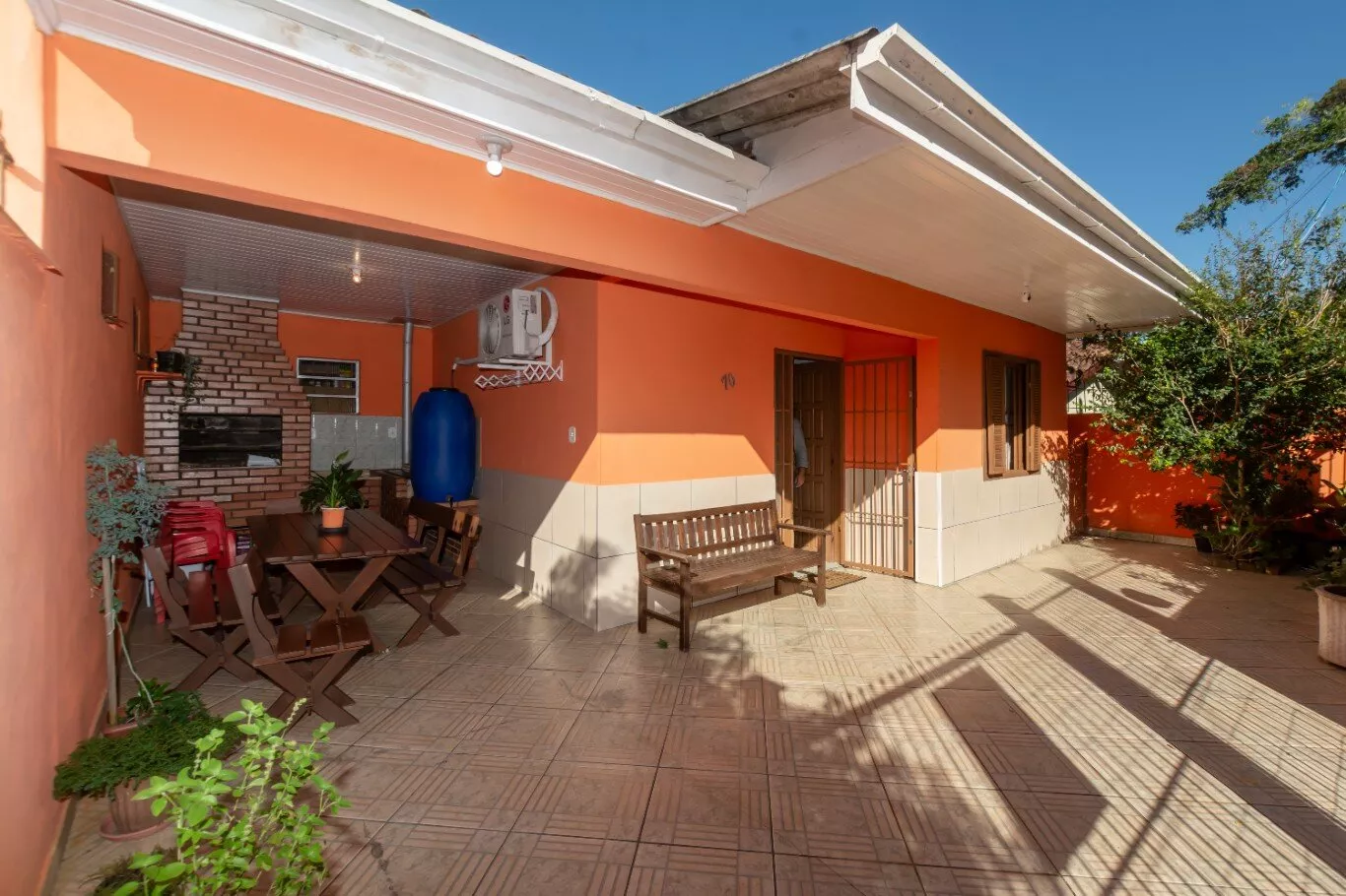 - Pátio com Piso em Cerâmica: Um espaço agradável para relaxar, brincar ou cultivar um jardim.